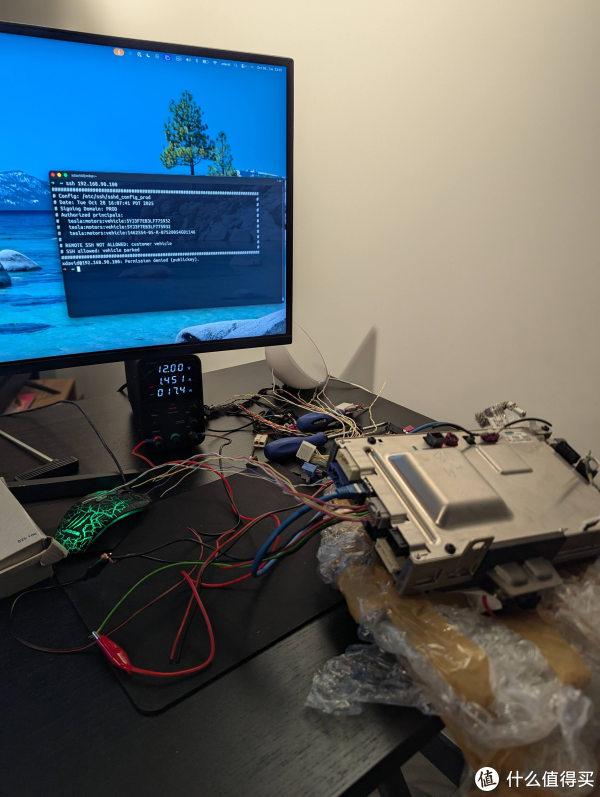 电源接通,红灯闪烁,屏幕亮起!一台完整的特斯拉车机系统,就在普通的办公桌上成功启动了!