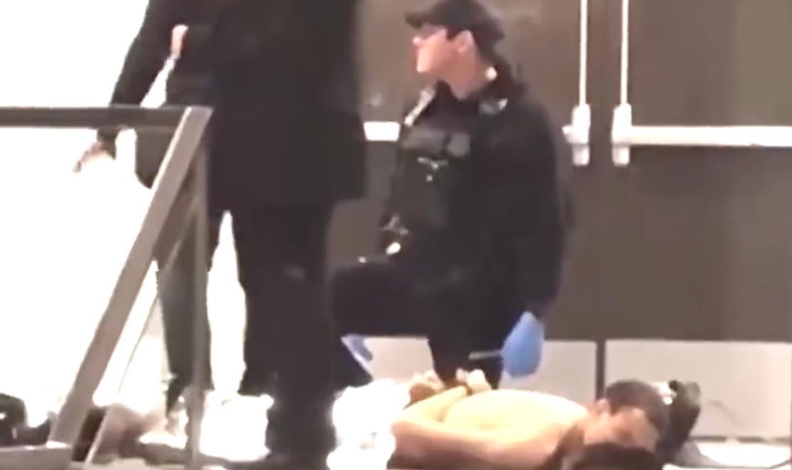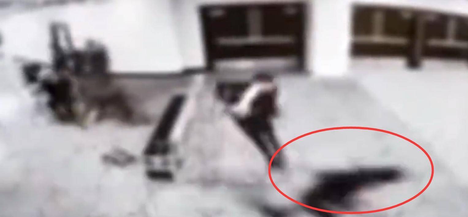 监控录像中枪手跑过安检(图片来源:央视新闻)